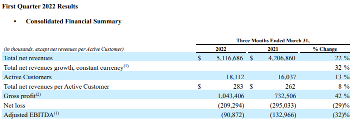 - 총 순수익은 고정 통화 기준으로 전년 동기 대비 22% 증가한 51억 달러, 전년 동기 대비 32%, 분기 대비 3% 증가했습니다(QoQ).