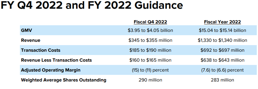 Affirm의 2022 회계 4분기 및 전체 연도 재무 전망은 다음과 같습니다.