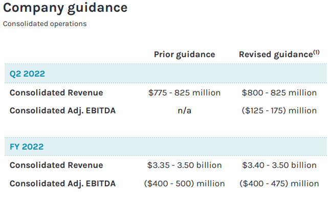 회사는 2022년 2분기 지침 범위를 이전에 발표된 7억 7천 5백만 달러에서 8억 8억 2천 5백만 달러로 강화했습니다.