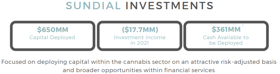 투자 포트폴리오는 관심을 불러일으켰고 수수료 수익 390만 달러, SunStream이 투자한 주식계정 피투자자의 이익 410만 달러, 시장성 있는 유가증권에 대한 투자 손실 1770만 달러(빌리지 팜스 인터내셔널, Inc. 및 The Valens Company Inc.)에 대한 공개된 전략적 투자에 대한 미실현 손실을 포함한다.