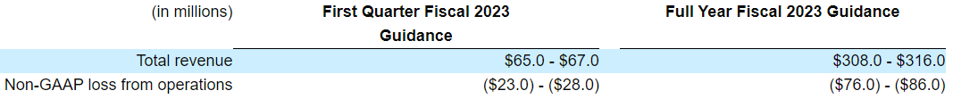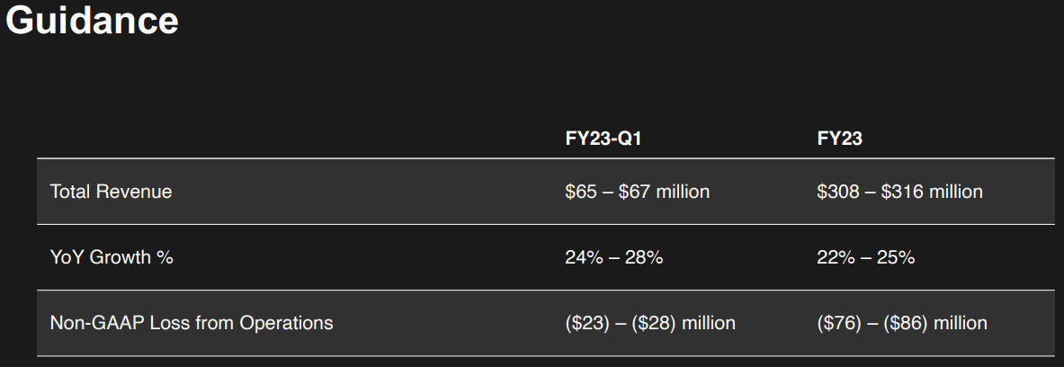 - Non-GAAP loss from operations : ($23.0) - ($28.0) vs 22Q4 $20.71