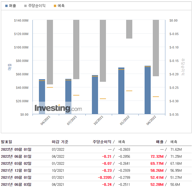 - 주당 순 손실 : GAAP 주당 순 손실은 1년 전 $(0.24)와 비교하여 $(0.55)였습니다. 비GAAP 주당 순 손실은 $(0.21)로 1년 전 $(0.15)에 비해 감소했습니다.