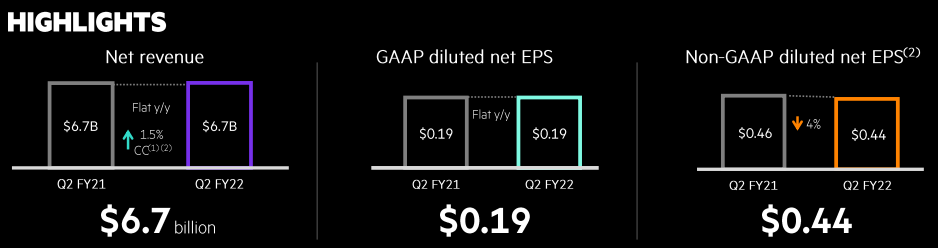 - GAAP 0.19달러, 주로 러시아 관련 비용 1억 2,600만 달러로 인해 전년도 기간과 동일