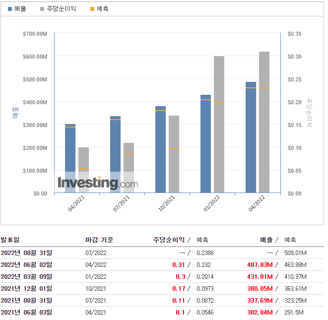 | 도큐사인(DOCU) 2022 Q1 실적발표 (4) | 2022.06.10 |
