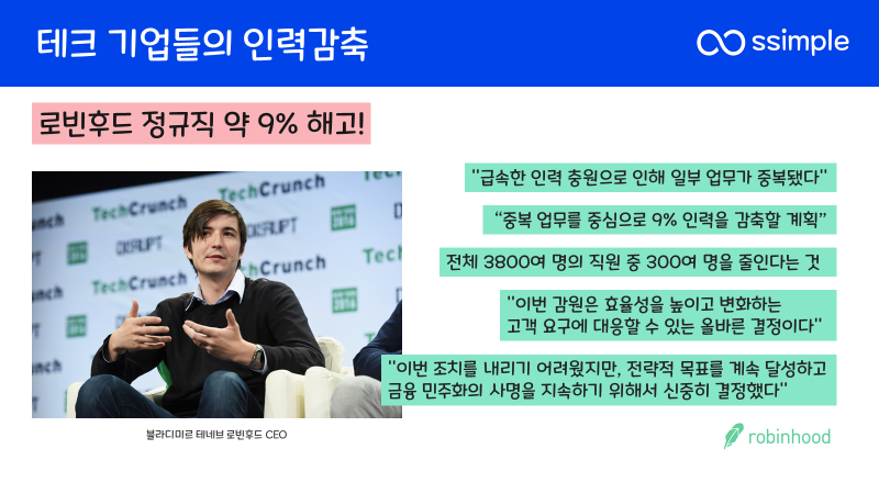 - 로빈후드 정규직 약 9%를 해고하였다.