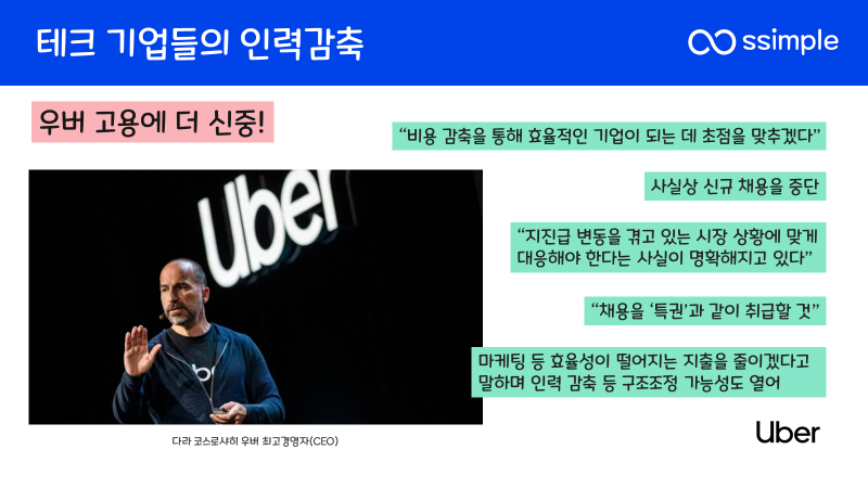 - 우버는 고용에 더 신중하겠다.