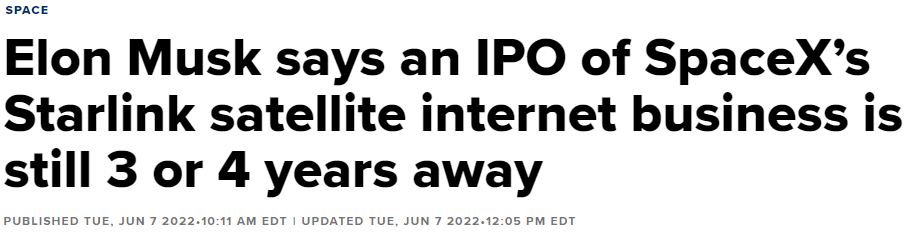 머스크는 앞서 CNBC가 입수한 스페이스X 직원들에게 보낸 이메일에 따르면 이르면 올해 안에 오퍼링을 목표로 삼았다. 머스크가 2019년 5월 보낸 이메일에는 "약 3년 후쯤 스타링크를 공개하는 것이 아마 말이 될 것"이라고 적혀 있었다.