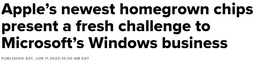 애플은 차세대 M2 칩을 탑재한 맥북 노트북을 발표한 후 마이크로소프트 윈도우로부터 PC 시장 점유율을 확보할 수 있는 위치에 있다.