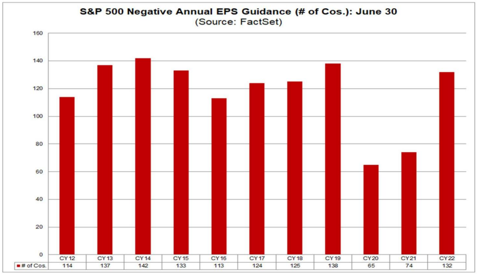 - 연간 EPS 가이던스 측면에서 238개의 S&P 500 기업이 2022년부터 6월 30일까지의 연간 EPS 가이던스를 발표했습니다.