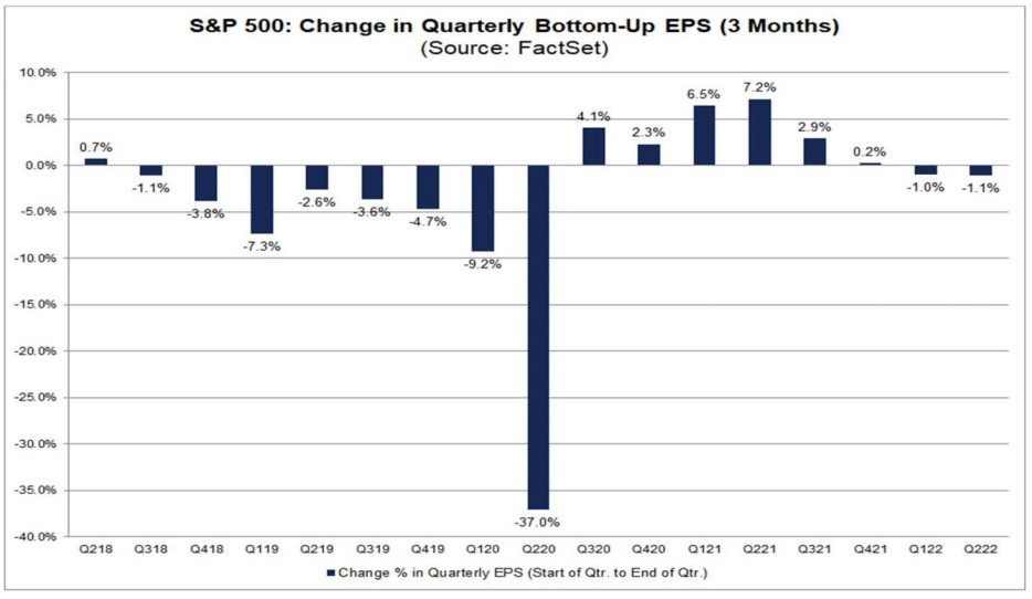 - 그러나 2분기는 COVID-19로 인해 미국에서 광범위한 잠금이 발생했던 2020년 2분기(-37.0%) 이후 분기 동안 상향식 EPS 추정치에서 가장 큰 감소를 기록했다는 점에 유의해야 합니다.