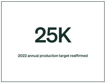 - 이러한 수치는 회사의 예상과 일치하며, 이전에 제공된 연간 25,000개의 생산 지침을 이행할 수 있는 궤도에 있다고 믿는다.