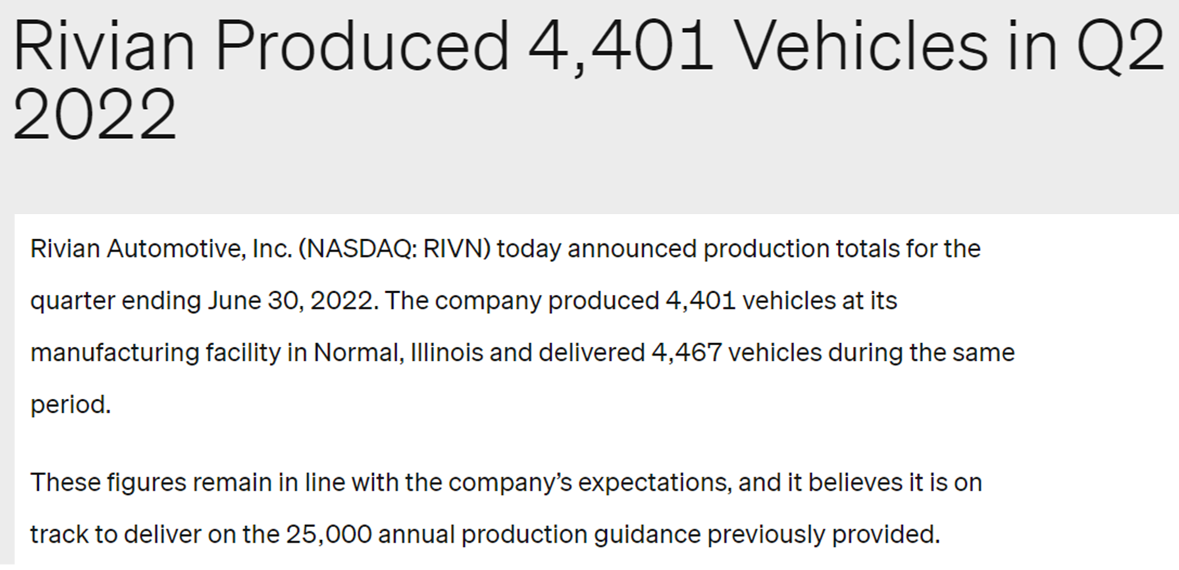 - Rivian Automotive, Inc.(NASDAQ: RIVN)는 오늘 2022년 6월 30일까지의 분기의 총 생산량을 발표했습니다.