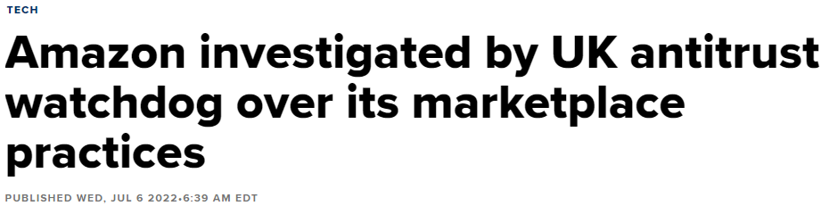 영국 경쟁시장청은 아마존이 영국 시장에서 판매자들에게 영향을 미치는 관행에 대해 "반경쟁적이고 고객들에게 더 나쁜 거래를 초래할 수 있다"고 조사 중이라고 밝혔다.