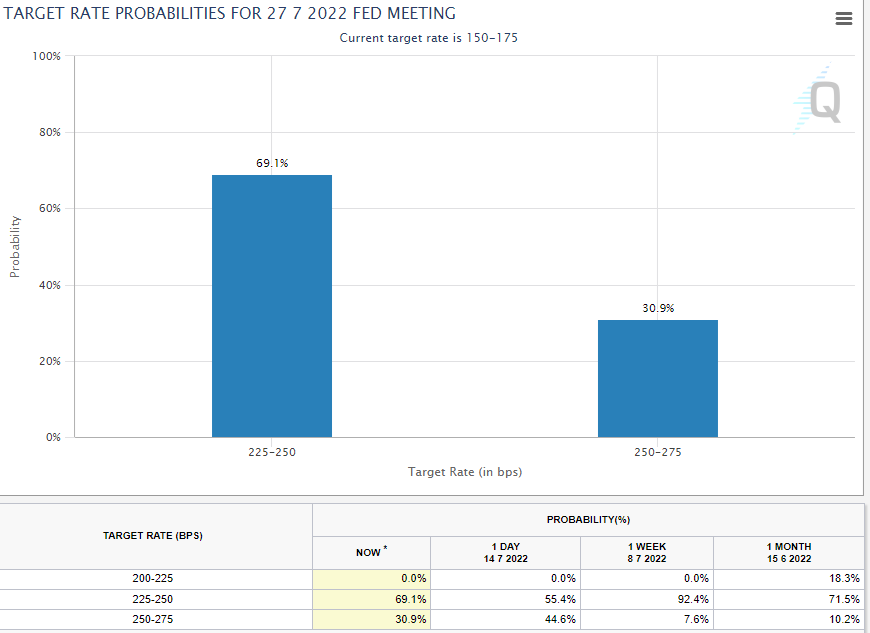 - CME Fed Watch : 75bp 69.1% / 100bp 30.9%