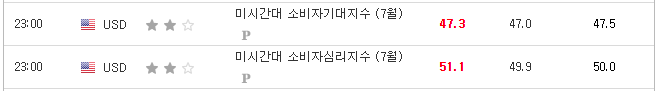- 미시간대 소비자기대지수(7월) 47.3 (예측 47, 이전 47.5)