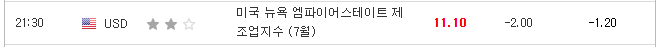 - 미국 엠파이어스테이트 제조업지수 11.1 (예측 -2, 이전 -1.2)