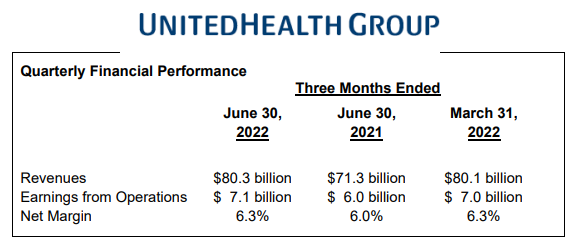 - United Health Group의 2022년 2분기 매출은 90억 달러 또는 13% 증가한 803억 달러를 기록했습니다.
