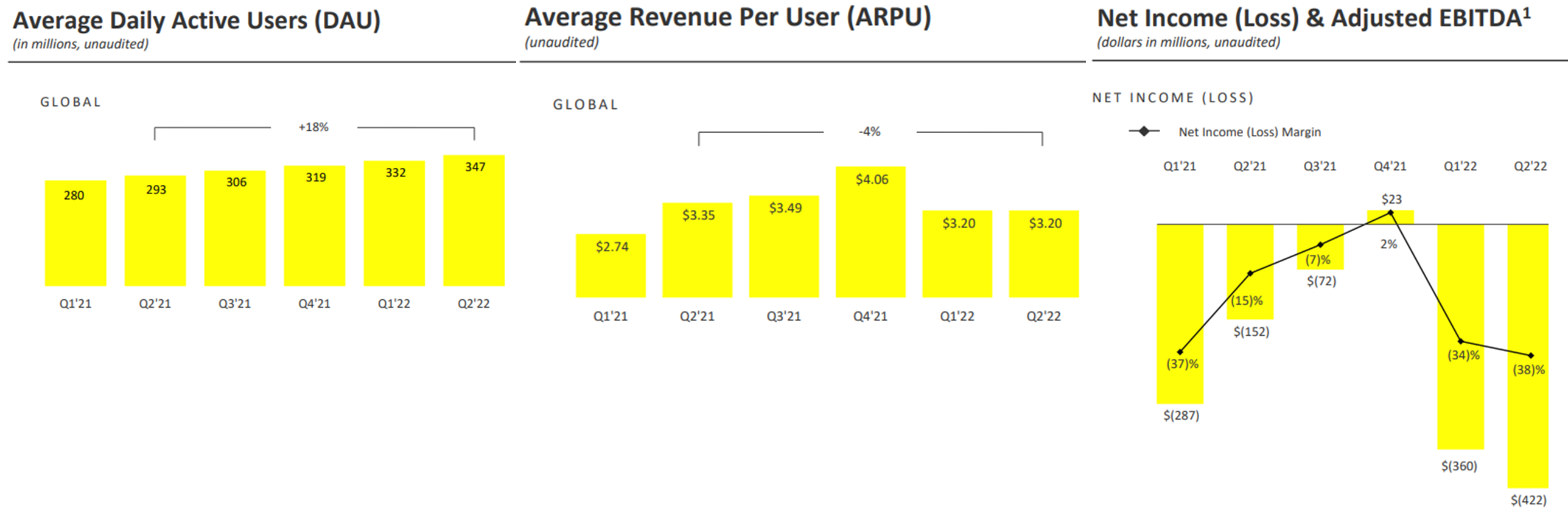 - 사용자당 평균 매출은 2022년 2분기에 전년 동기 대비 4% 감소한 3.20달러를 기록했다.