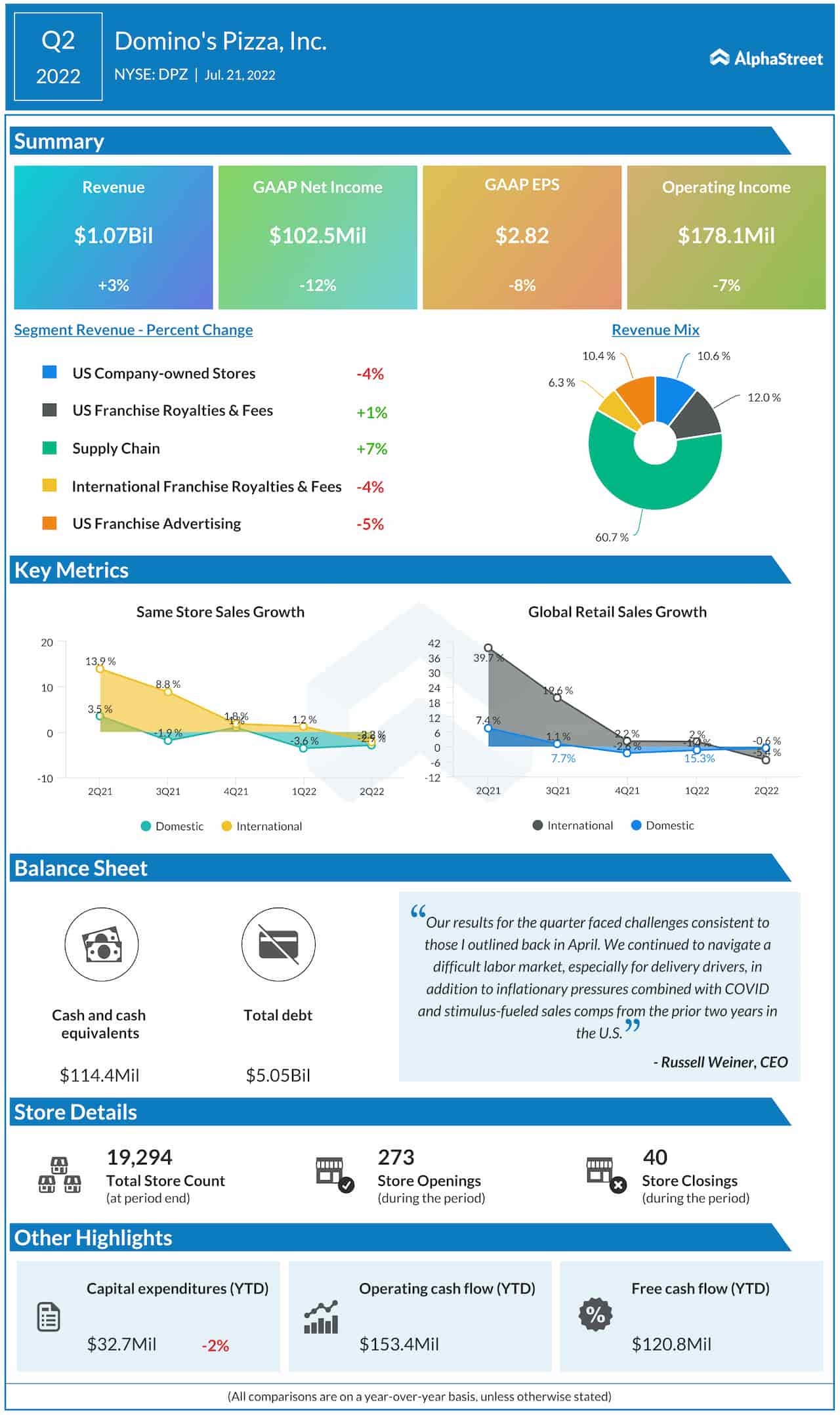 도미노피자(DPZ) 2022 Q2 실적발표 씸플어닝입니다.