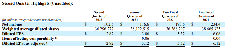 - 2022년 2분기 동안 당사는 보통주 14만8248주를 총 5000만달러에 환매하여 회수하였습니다.