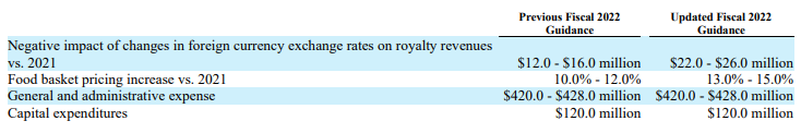 - 외화 환율 변동이 로열티 수익에 미치는 부정적 영향 vs 2021년 : $12.0 - $16.0 million -> $22.0 - $26.0 million