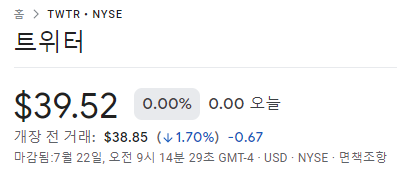 트위터(TWTR) 2022 Q2 실적발표 씸플어닝입니다.