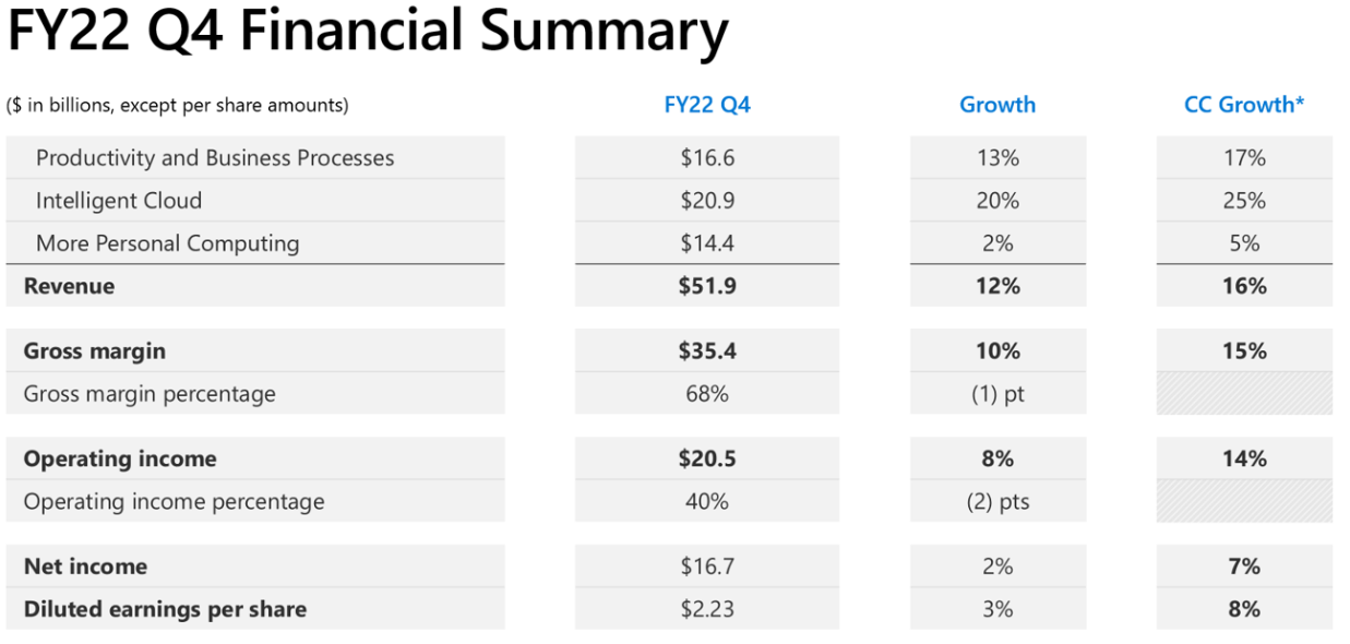 마이크로소프트(MSFT) 2022 Q4 실적발표 씸플어닝입니다.