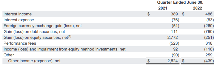 - 21년도 $2,624M으로 이익을 보여줬지만 22년도는 $(439)로 손실