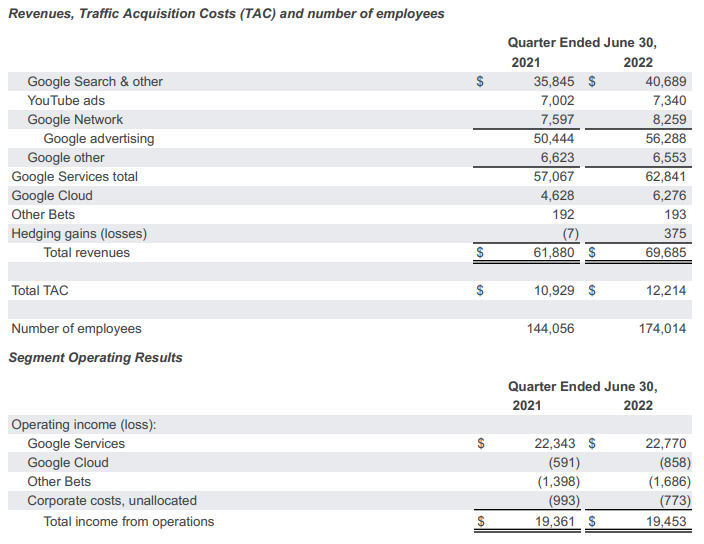 - Google Services total : $6,553M (vs 21Q4 $6,623M)