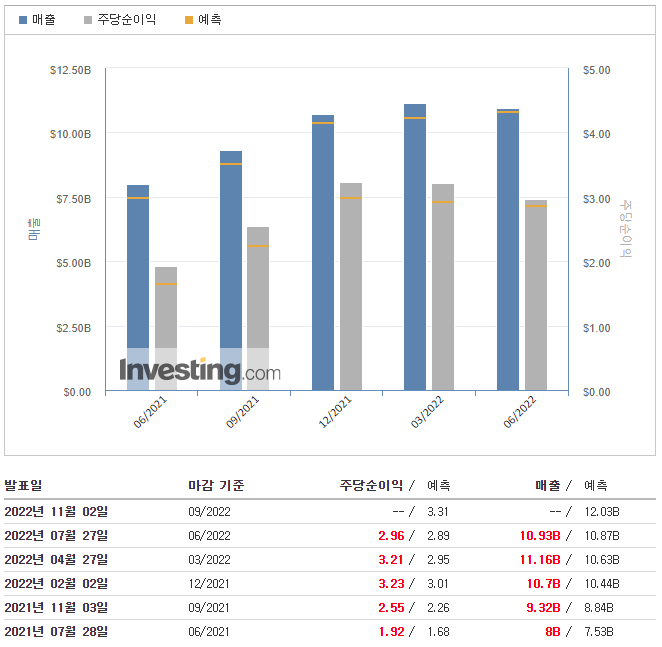 - EPS : $3.00 ~ $3.30/ Q3 $2.96에 비해 상승