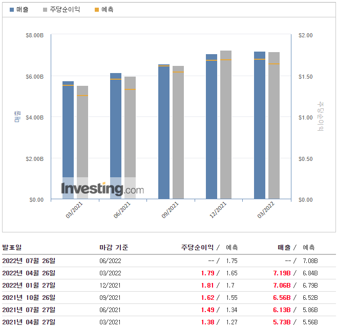 2분기 실적은 2021년 같은 기간의 30억3000만 달러 또는 주당 1.70달러에서 36억5000만 달러까지 올랐다.특수종목을 제외한 조정이익은 전분기 주당 1.38달러에서 주당 1.79달러로 상승했다.