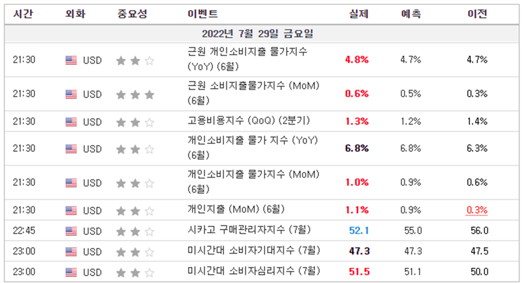 - 미국 핵심 PCE 가격 지수 전월 대비 실제 0.6%(예상 0.5%, 이전 0.3%)