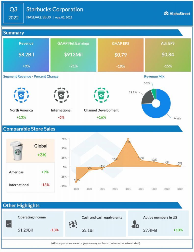 스타벅스(SBUX) 2022 Q3 실적발표 씸플어닝입니다.