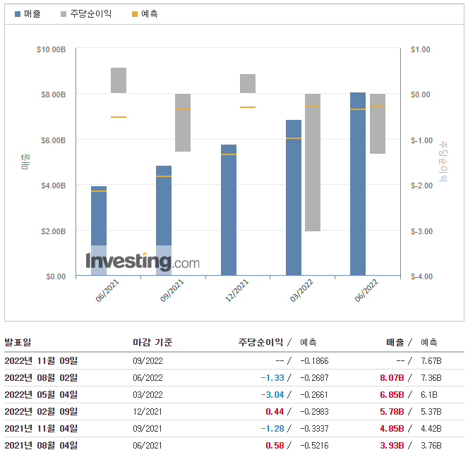 주당순이익(EPS) : -$1.33