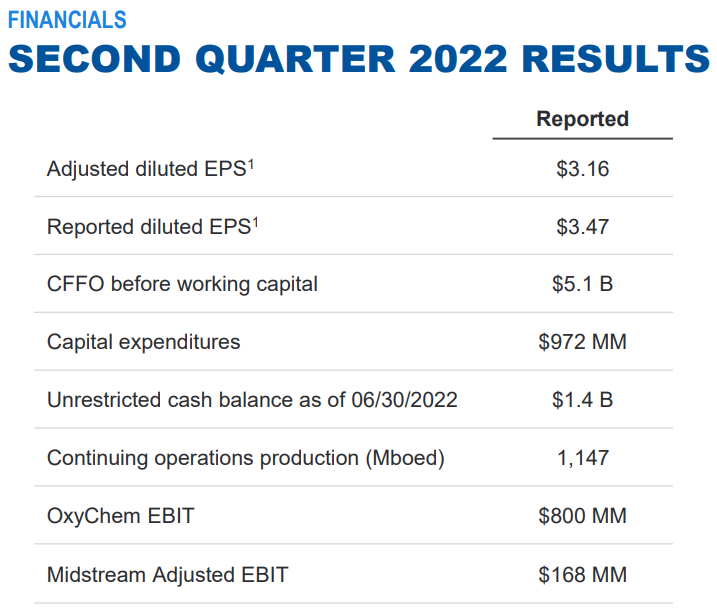 [옥시덴탈, 2022년 2분기 실적 발표]