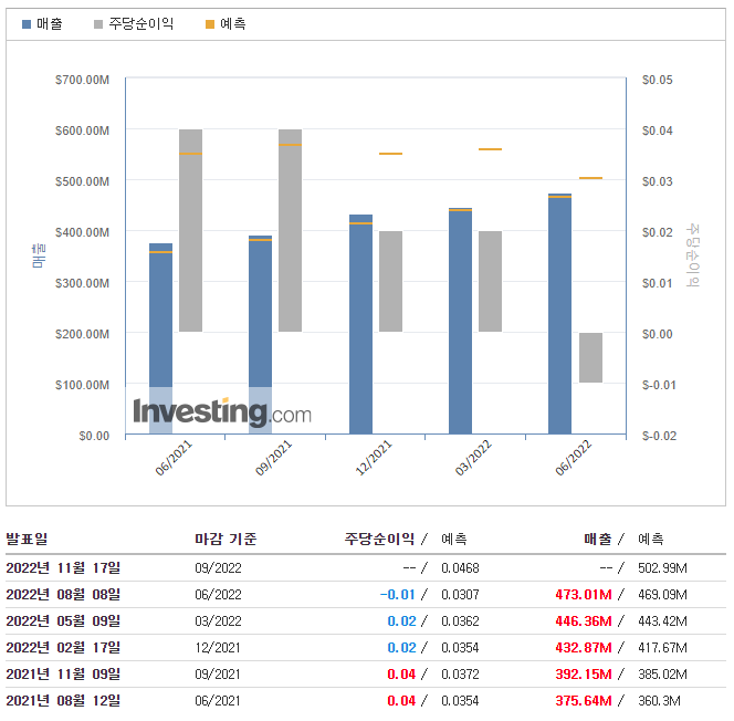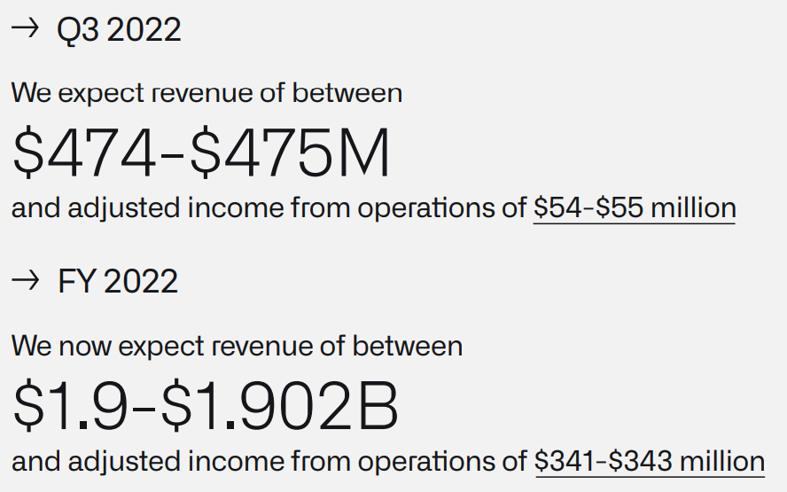 - 2022년 3분기 매출은 4억 7400만~4억 7500만 달러, 운영 조정 수입은 5400만~5500만 달러로 예상된다.