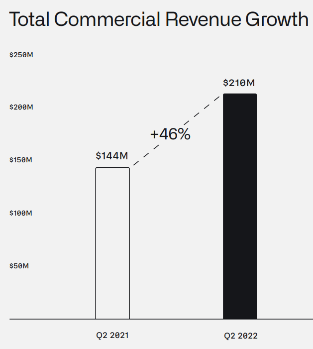- 미국 상업 고객 수는 2021년 2분기 34개 고객에서 2022년 2분기 119개 고객으로 전년 대비 250% 증가했습니다.