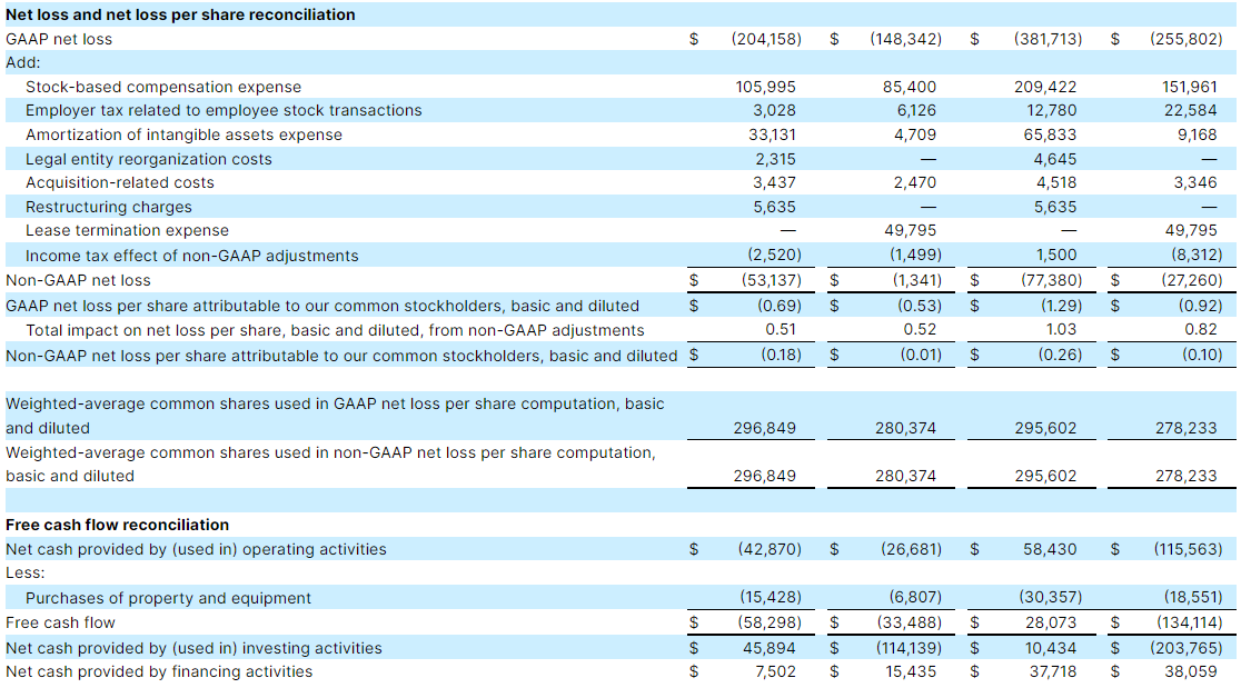 - 기본 및 희석 주당 순손실은 0.69달러로 2021년 2분기 기본 및 희석 주당 순손실은 0.53달러였다.