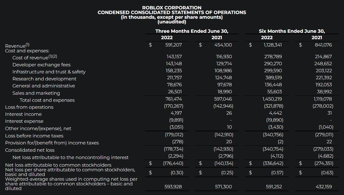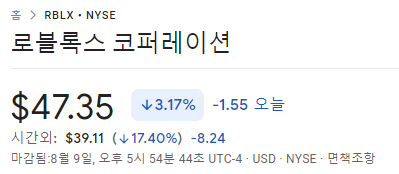 로블록스(RBLX) 2022 Q2 실적발표 씸플어닝입니다.