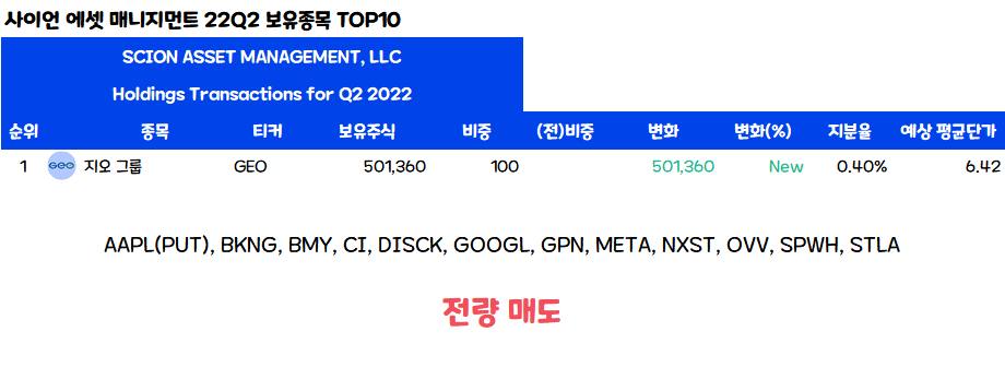 과연 마이클 버리의 사이언 에셋 매니지먼트 22Q2 보유종목은 무엇일까요?