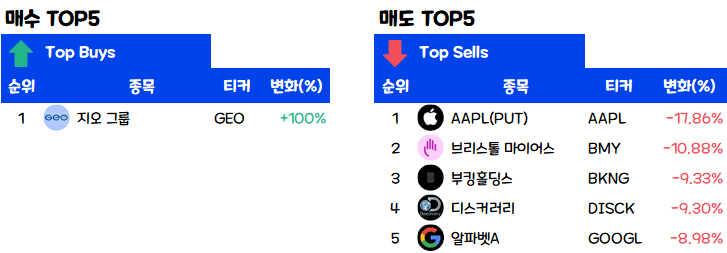 ❌ AAPL(PUT), BKNG, BMY, CI, DISCK, GOOGL, GPN, META, NXST, OVV, SPWH, STLA 전량 매도