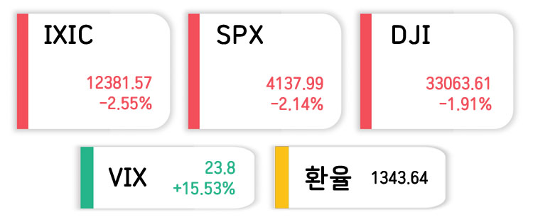 - CBOE 변동성 지수(VIX)는 큰 폭으로 상승했다.