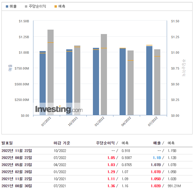 - 예측 : $1.12B (-1.79%)