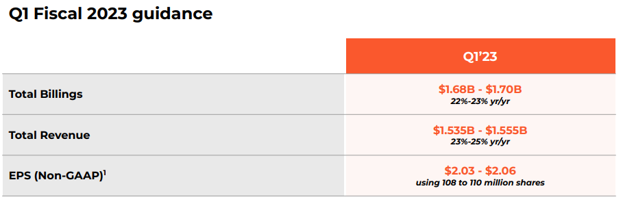 - 총 청구액 16억 8천만 달러~17억 달러, 전년 대비 22%에서 23% 사이의 성장을 나타냅니다.