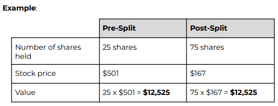 - 이사회는 주식 3대 1 분할을 승인했다.