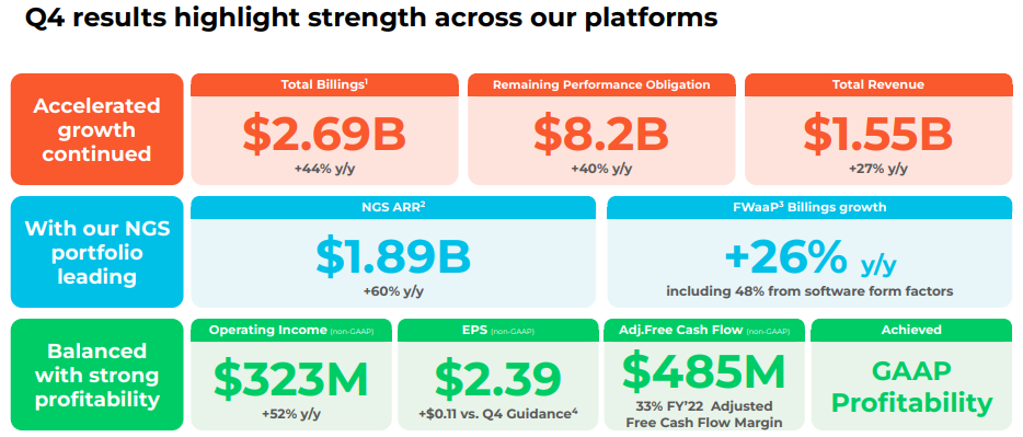 - 회계 4분기 청구액은 전년 동기 대비 44% 증가한 27억 달러를 기록했다.