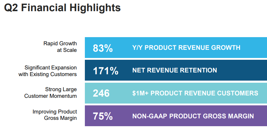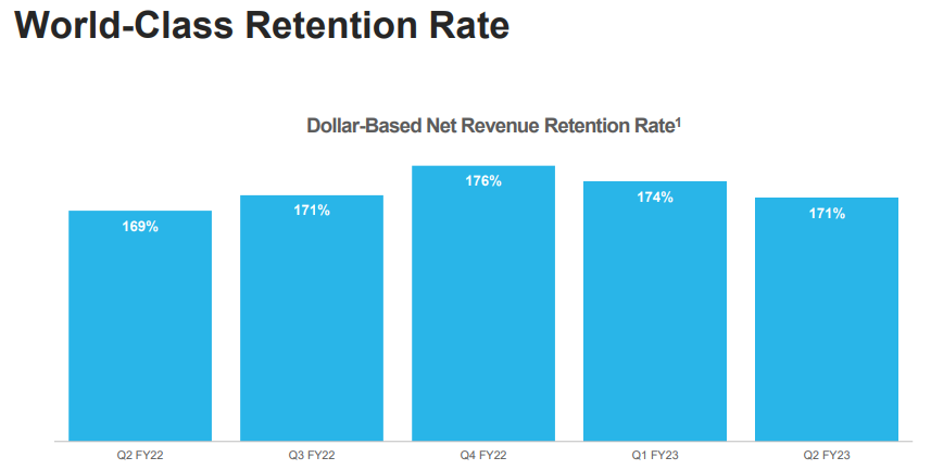 - 기존 고객과의 대폭적인 확장: 171% 순 매출 유지