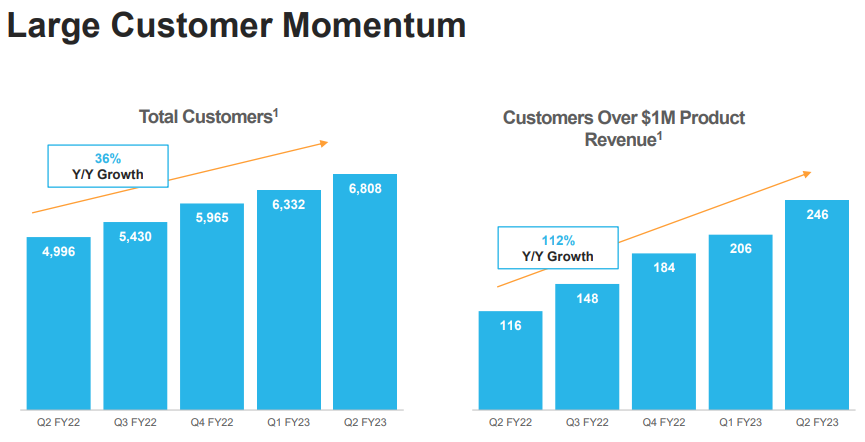 - 강력한 대규모 고객 모멘텀: 246의 $1M + 제품 매출 고객