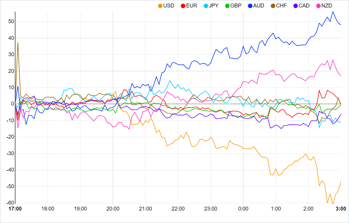 ✅통화 차트 : 가장 강한 - AUD, 가장 약한 - USD.