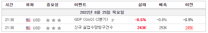 - 미국의 2분기 GDP 추정실제 -0.6%(예측 -0.7%, 이전 -0.9%)